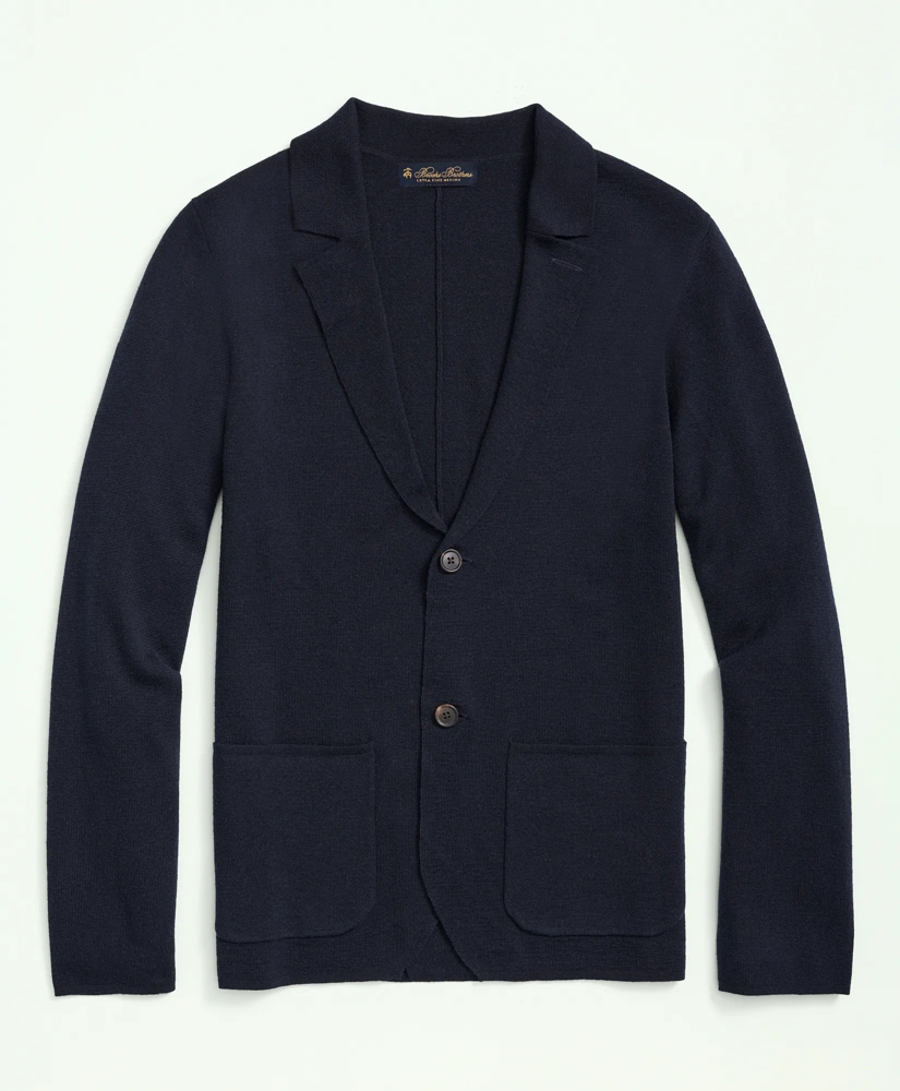 Brooks Brothers' merino wool sweater blazer combining premium material with sweater-like comfort.