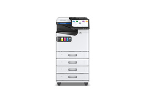 Enterprise-grade color multifunction printer with high-speed printing, advanced scanning, copying, and faxing capabilities. Features multiple paper trays and finishing options designed for high-volume office workflows and document management.